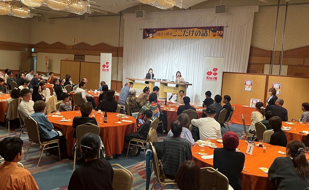 ホテルキャッスルプラザにて本日10月25日、FMラジオ局Kiss FM KOBEの人気サウンドクルー、珠久美穂子さんと藤原岬さんによるトークディナーイベント「美穂子と岬のここだけの話! in ホテルキャッスルプラザ」が開催されました。