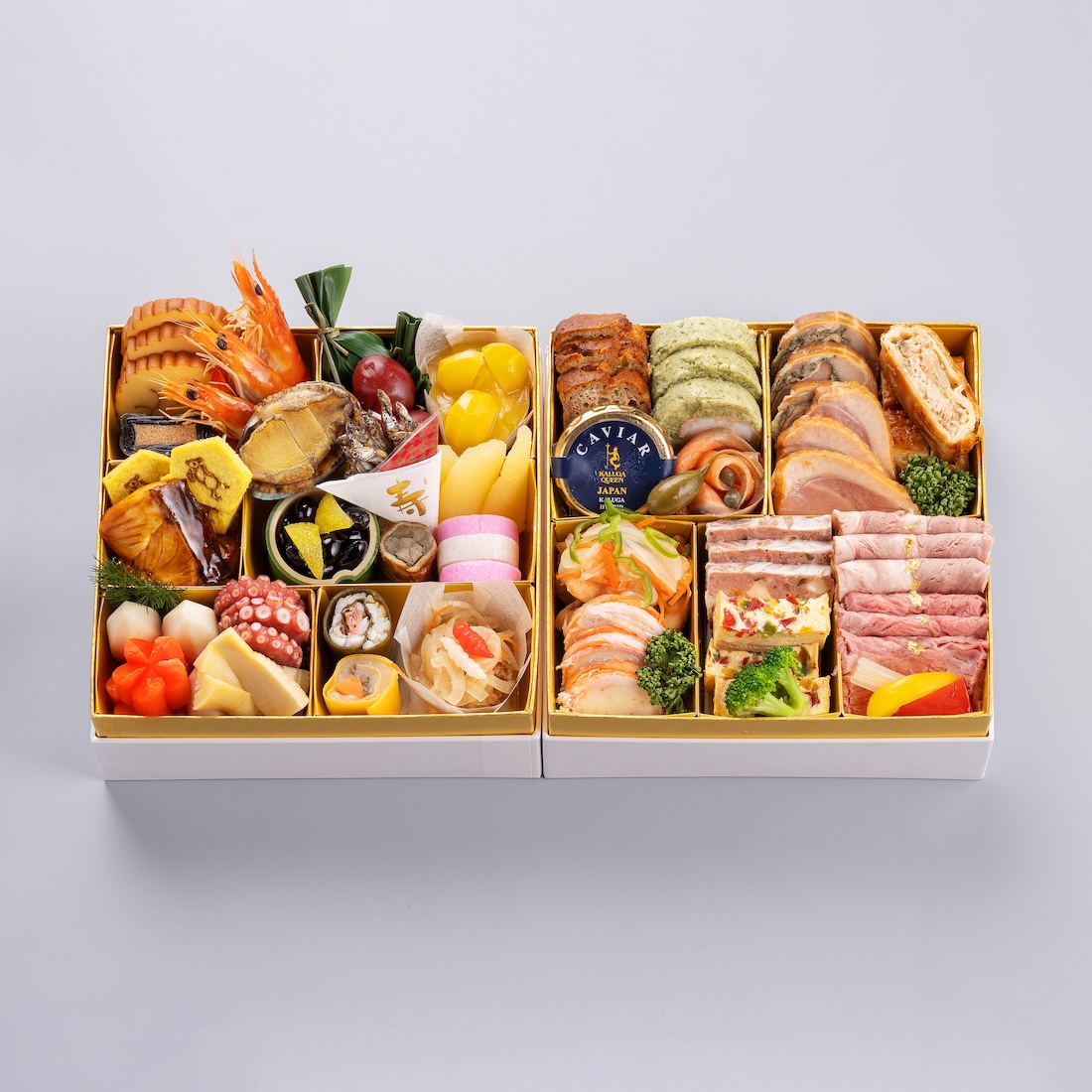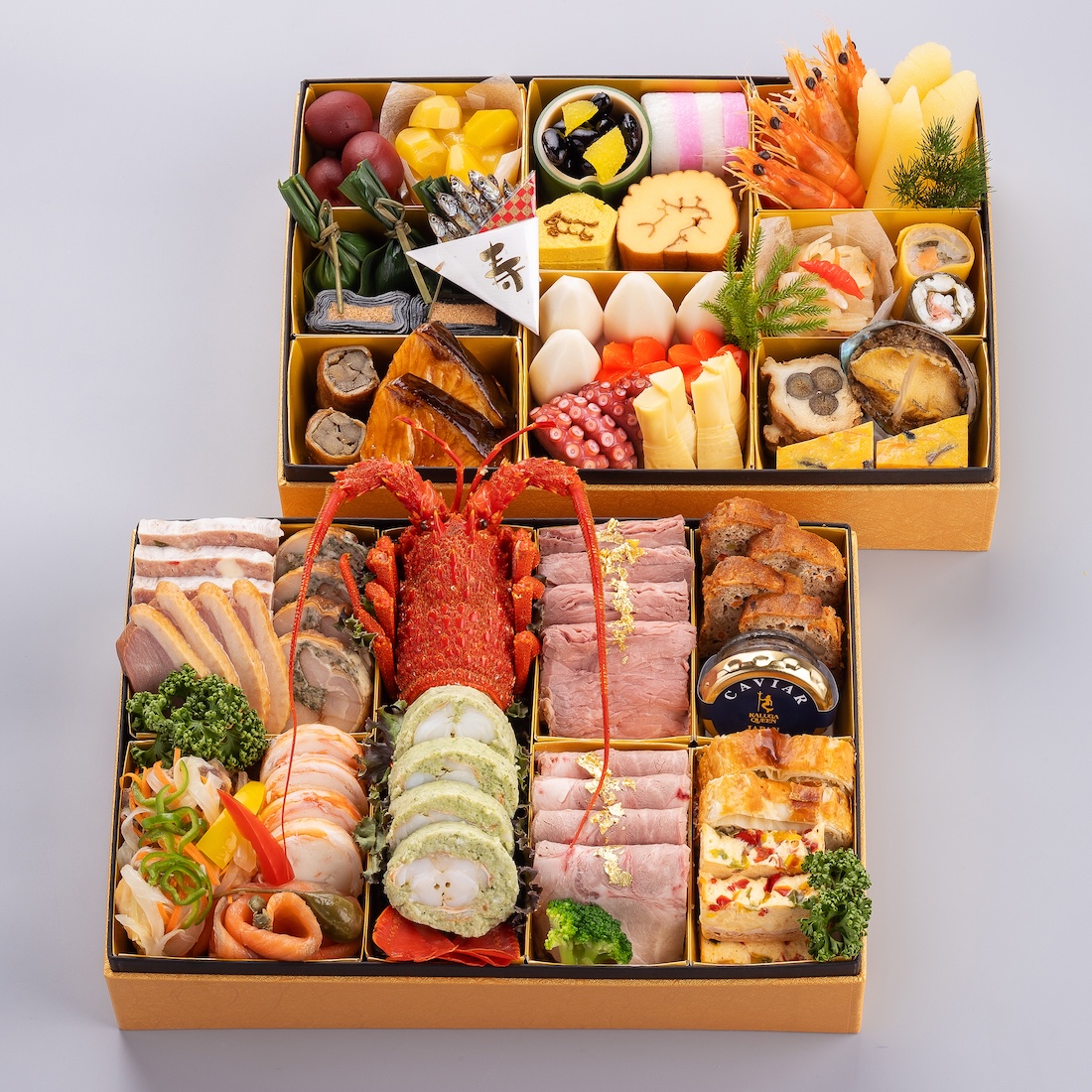 毎年完売の人気No.1おせち。日本料理の伝統と洋食のご馳走を盛り込んだ華やかな二段重。