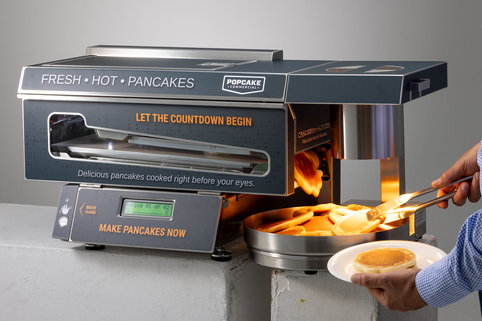 どなたでも安全で簡単に操作で き、センサーに手をかざすだけで焼き立てのパンケーキが出来上がります。