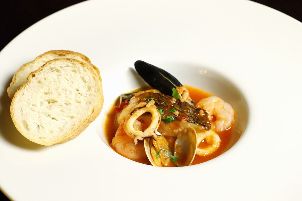 数種類の魚介を使用しイタリアの港町をイメージした素材の旨味溢れるスープに仕上げました。