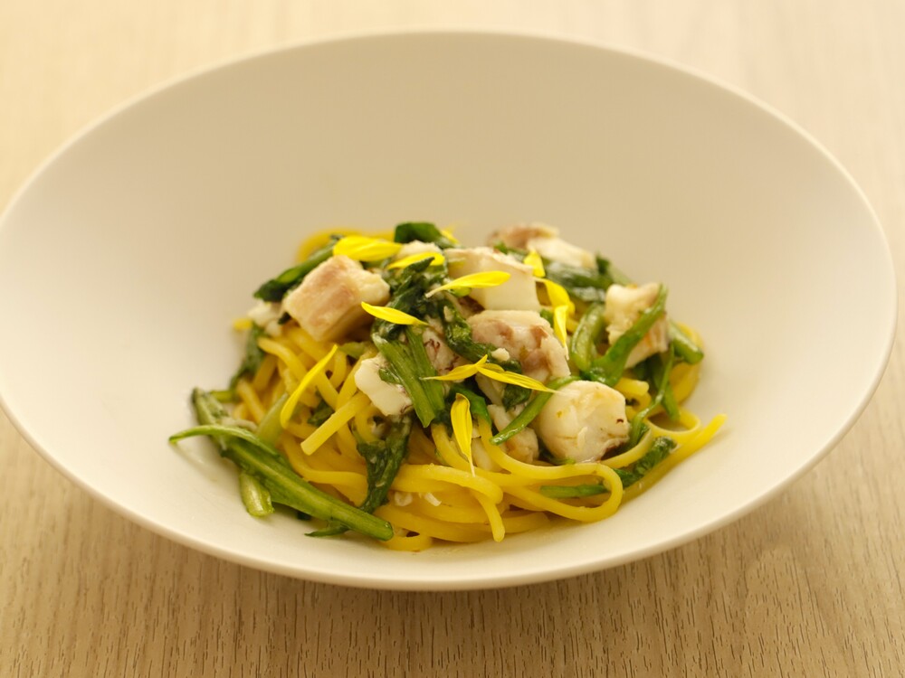 ・真鯛と春菊の柚子胡椒香るオイルソース(シーズナルパスタ・画像のパスタ)・・・・・¥2600