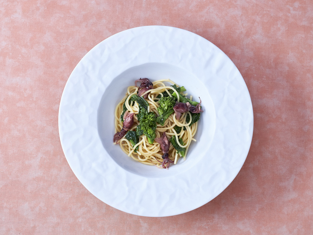 ホタルイカの濃厚な旨味と菜の花のほろ苦さが合わさった季節のパスタ