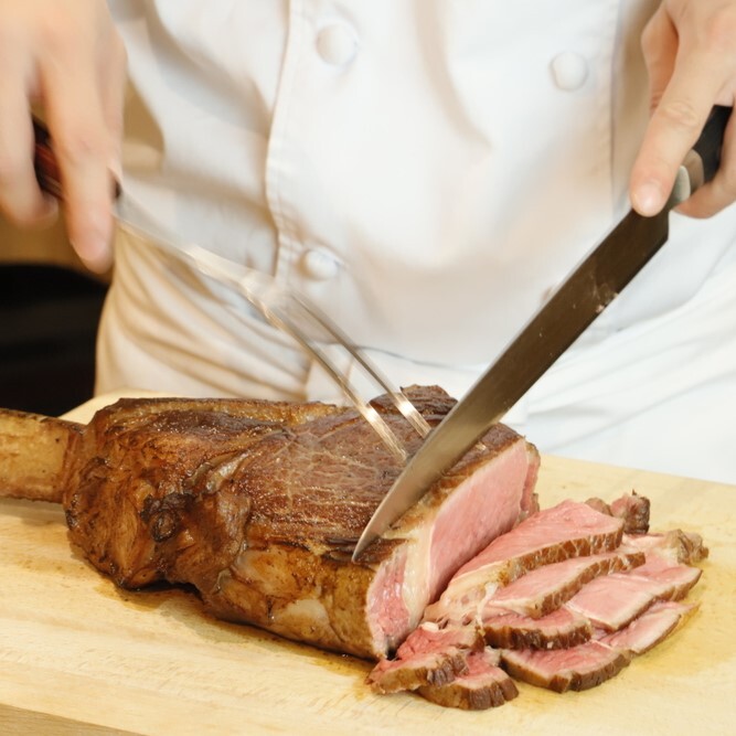 お客様の目の前で切り分ける薪窯焼きローストビーフをぜひお召し上がりください!!