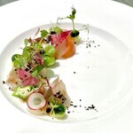 <前菜> 真鯛のカルパッチョ 柑橘のビネグレット