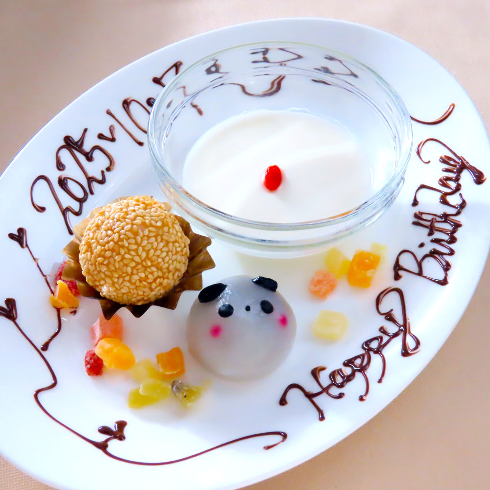 お祝い事や記念日利用の際、ご希望のコメントを入れた特別デザートをプレゼントいたします。ご予約の際にお申し出くださいませ。